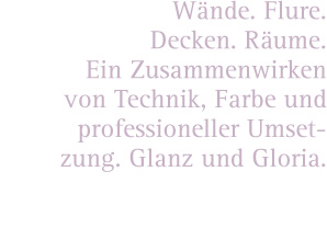 Mit kreativen Gestaltungstechniken können wir jeden Raum in eine andere Atmosphäre versetzen. Von Spachteltechnik über verschiedenartigste Struktureffekte bis hin zu klassischen Ornamenten oder einer perfekten Nachbildung von Marmoroberflächen. Gönnen Sie Ihrem Raum Individualität.